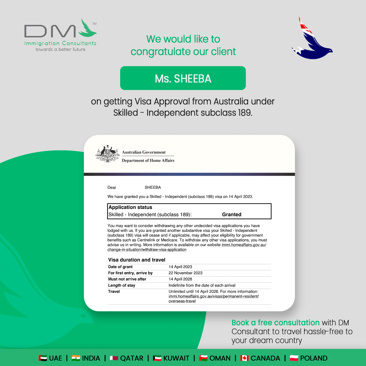 We are proud to share some happy moments with our clients. We are the top immigration consultants in Dubai you can trust to turn your migration dream into reality. If you’re looking to immigrate to Canada, Australia, the UK, or the US to pursue your dream career, please contact us. We provide our best, hassle-free immigration and visa consultancy service with professional assistance.